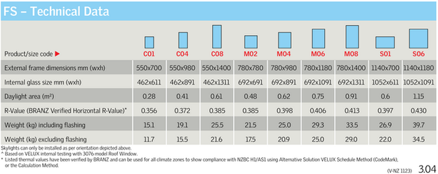 - SHGC data based on NFRC simulations at 90° installation pitch (VSS/VSE/VCS nominal skylight size 1200mm x 1200mm).
